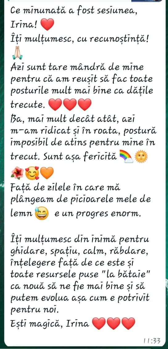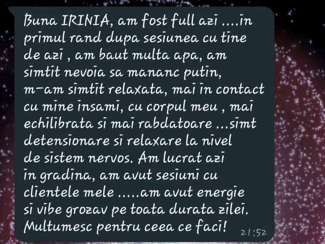 "Irina, parcă nu-mi mai găsesc timp pentru mine, simt o neliniște iar de echilibru nici nu poate fi vorba. Simt că ofer și mă ofer celorlalți, dar eu nu-mi dau mie suficient."